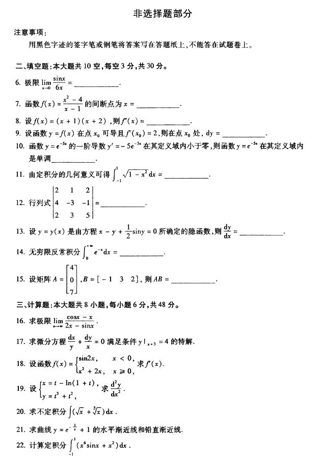 试题练习:2018年4月全国高等教育自考《高等数学(工专)》试题