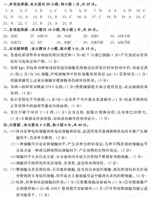 2018自学考试微生物学与免疫学基础模拟试题答案: