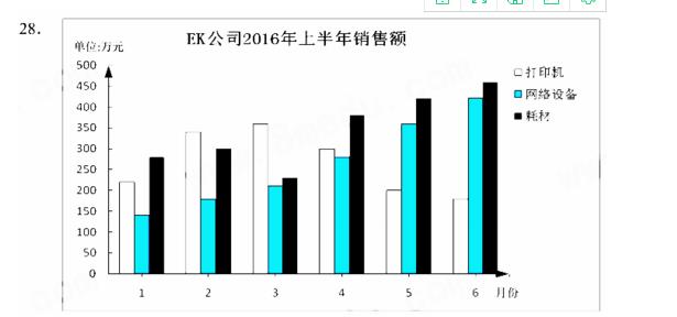 28、 EK公司销售的主要产品有打印机、网络设备和耗材,2016年上半年的销售额如下表所示: