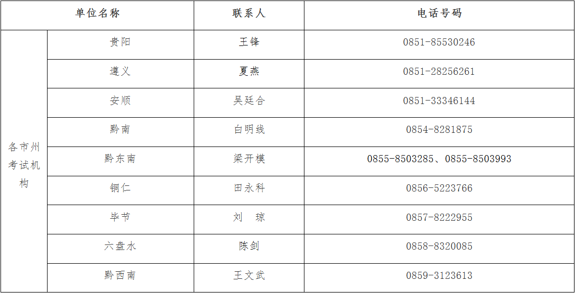 附件:各市(州)高等教育自学考试报名工作联系信息