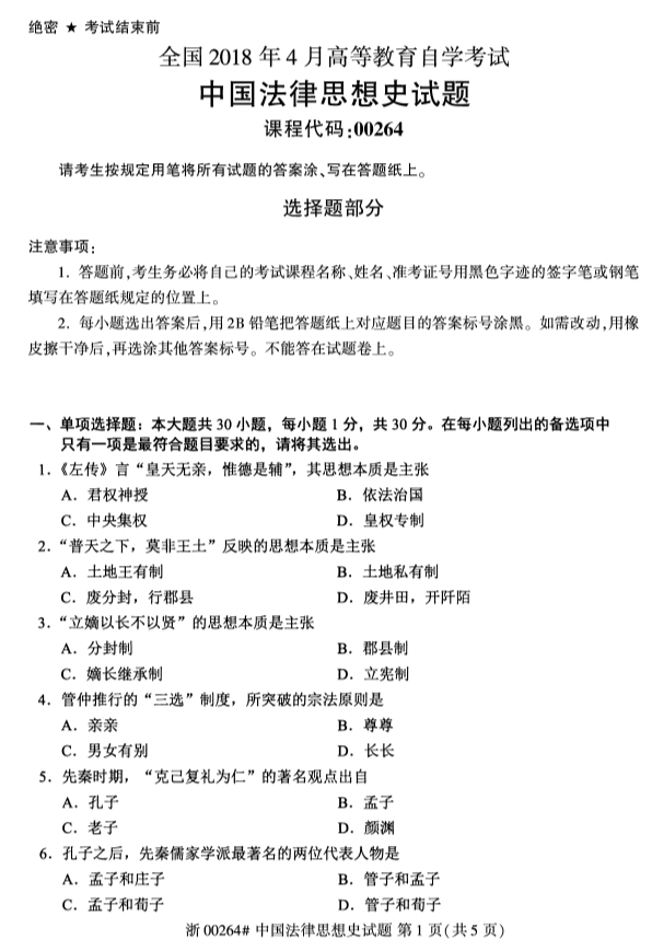 全国2018年4月全国高等教育自考中国法律思想史试题,由贵州自考网整理。更多自考试题练习,请自考学生关注贵州自考网。