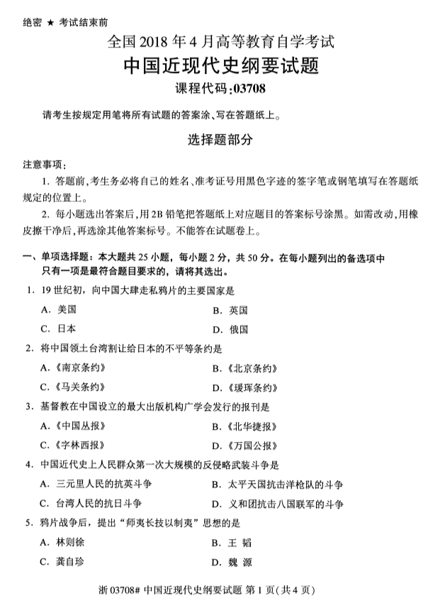 全国2018年4月高等教育自考中国近现代史纲要试题,由贵州自考网整理。更多自考试题练习,请自考学生关注贵州自考网。