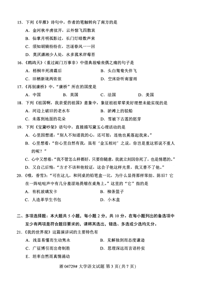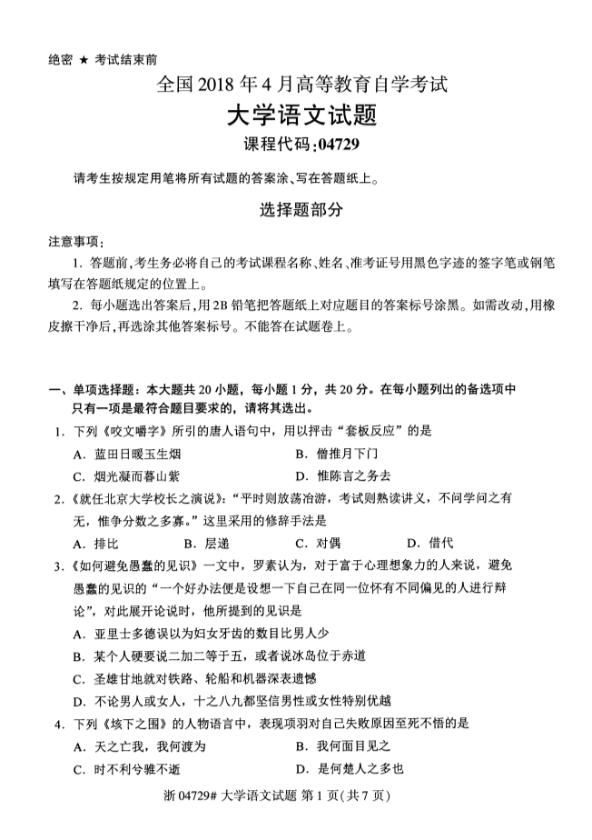 全国2018年4月高等教育自考大学语文试题,由贵州自考网整理。更多自考试题练习,请自考学生关注贵州自考网。