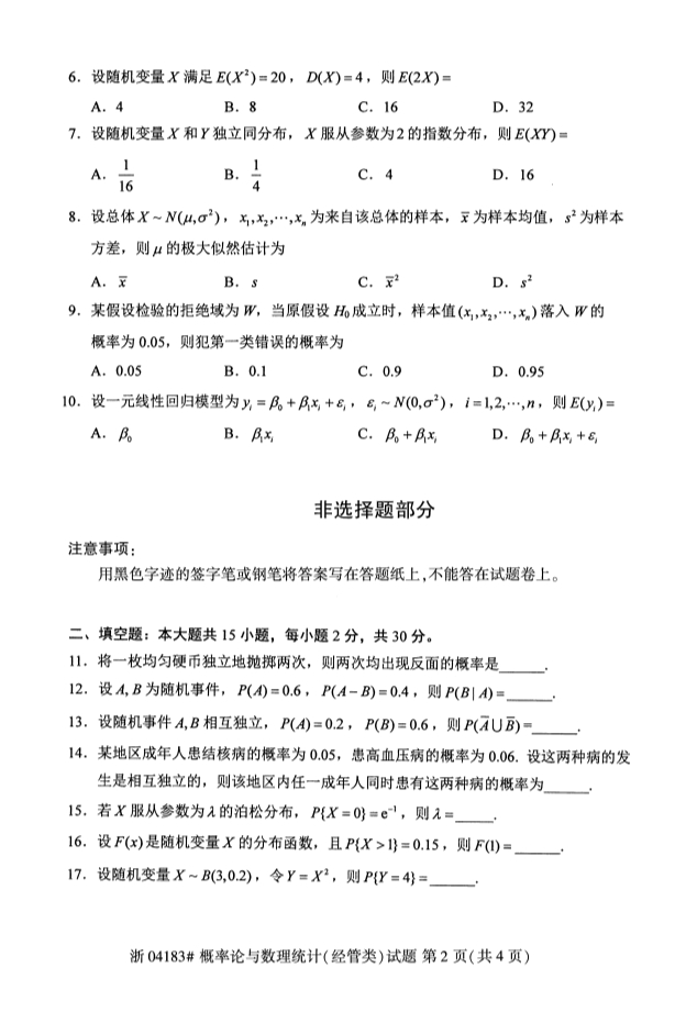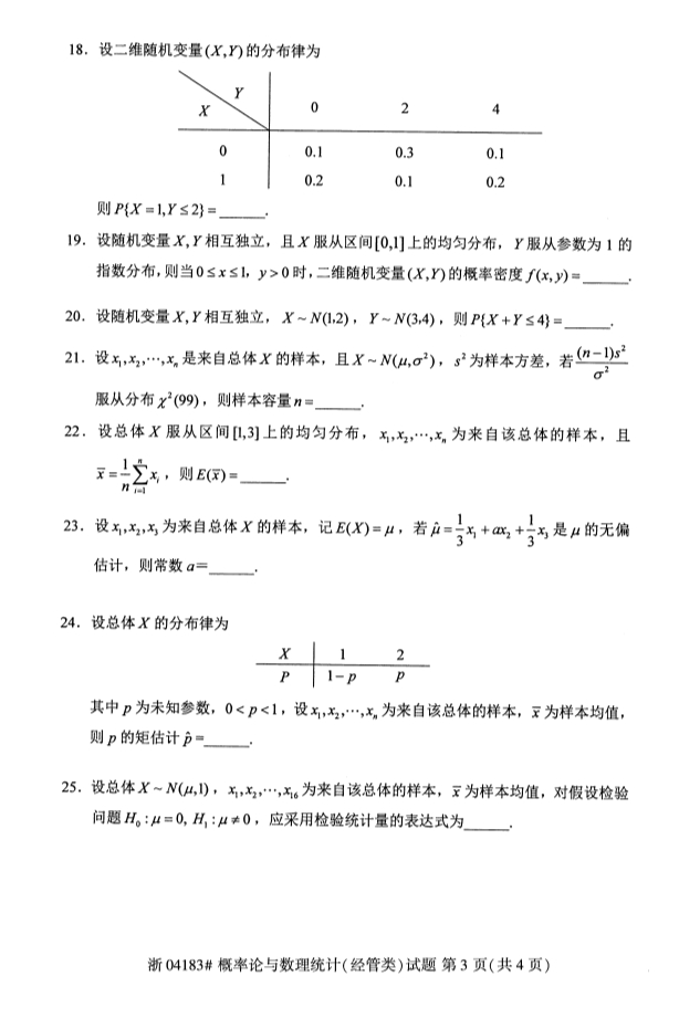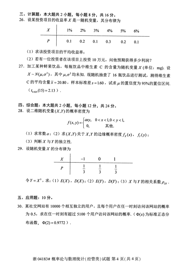 试题科目:概率论与数理统计(经管类)试题