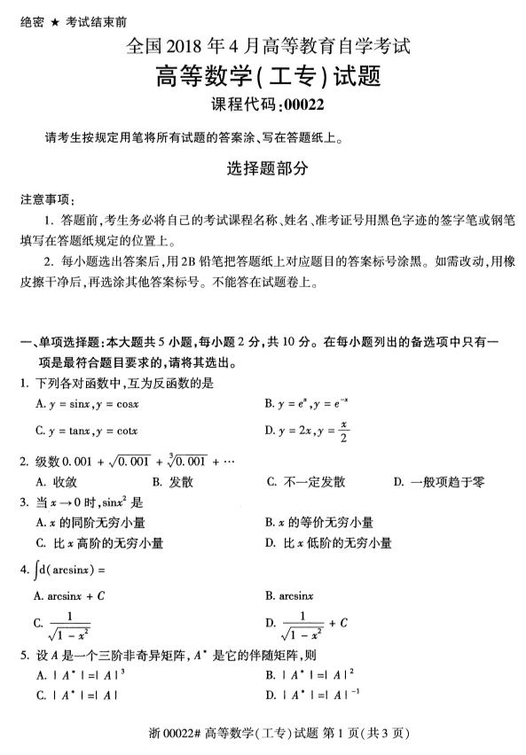 全国2018年4月高等教育自考高等数学(工专)试题,由贵州自考网整理。更多自考试题练习,请自考学生关注贵州自考网。