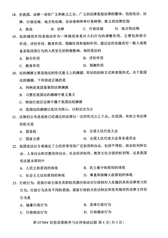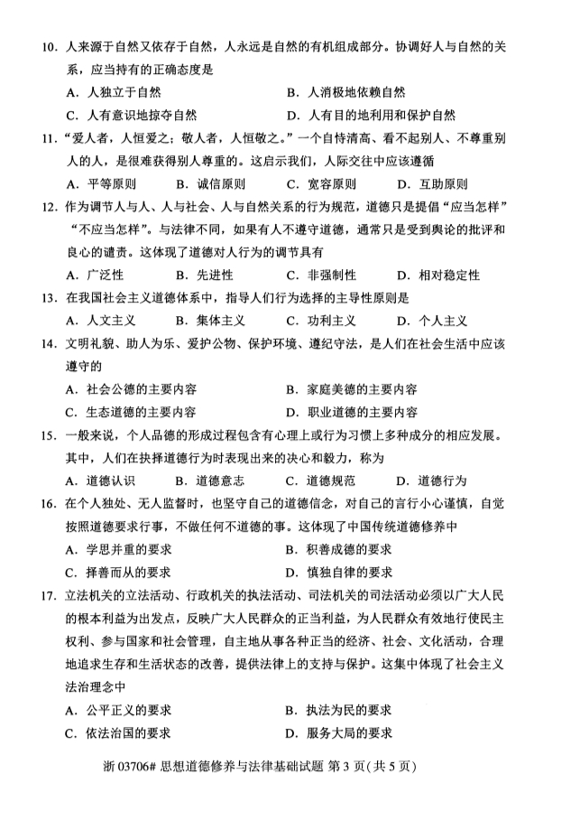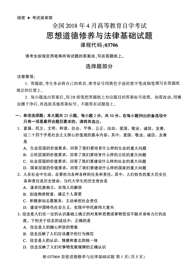 全国2018年4月高等教育自考思想道德修养与法律基础试题,由贵州自考网整理。更多自考试题练习,请自考学生关注贵州自考网。