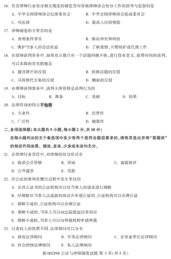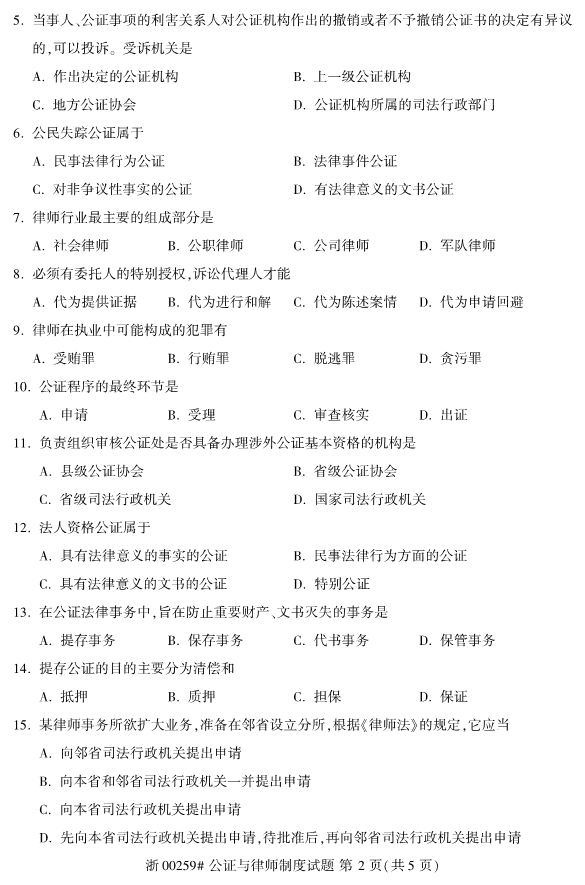 试题科目:公证与律师制度试题