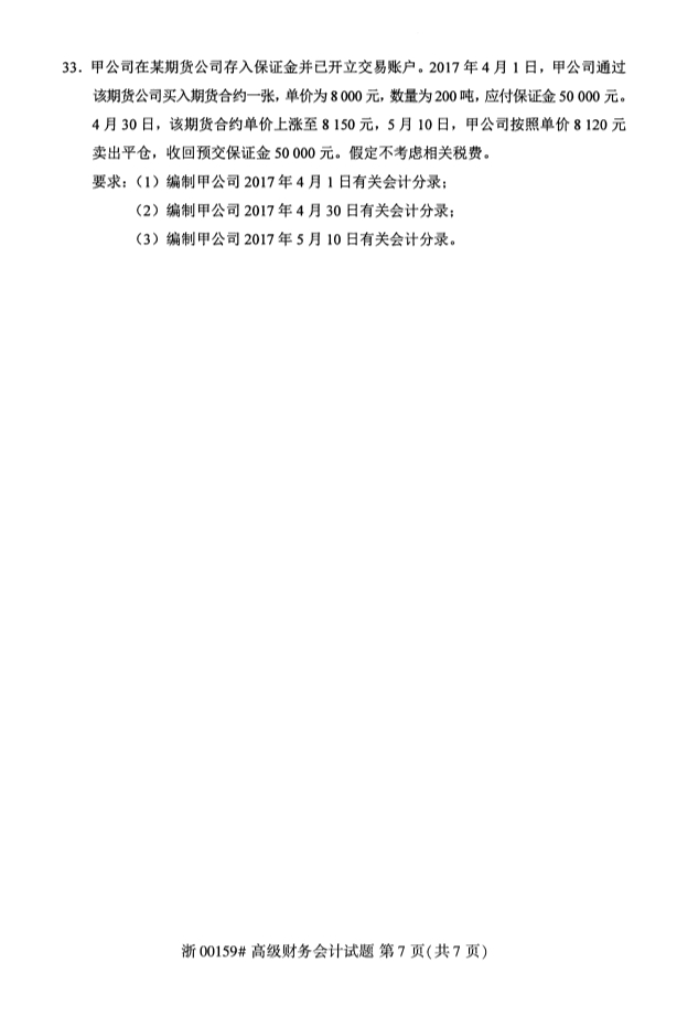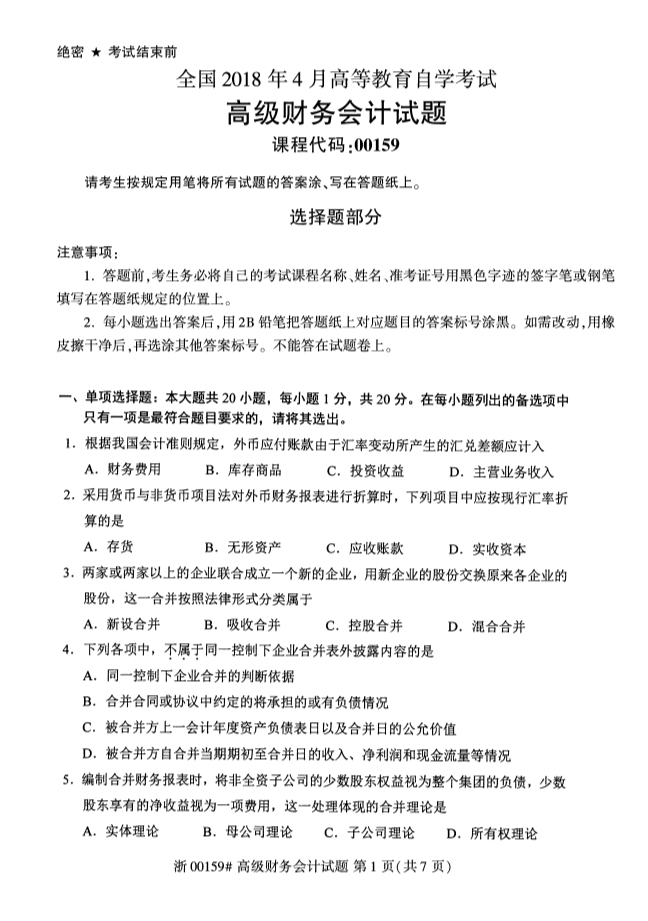 全国2018年4月高等教育自考高级财务会计试题PDF