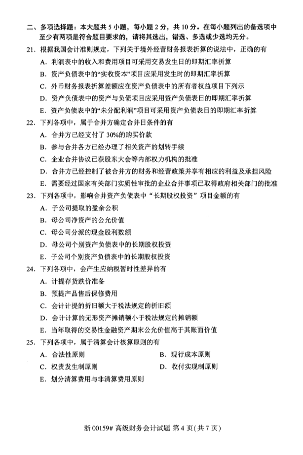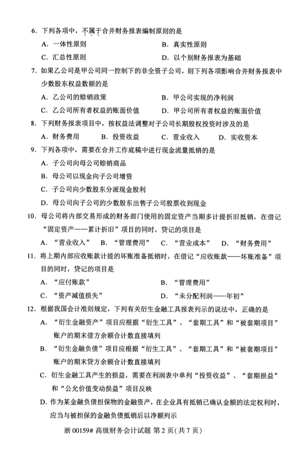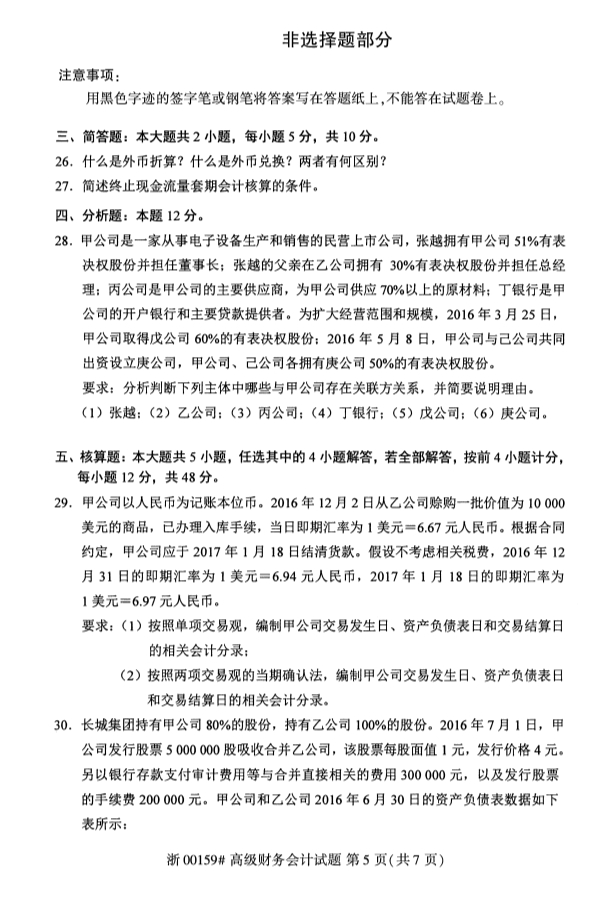 试题科目:高级财务会计试题
