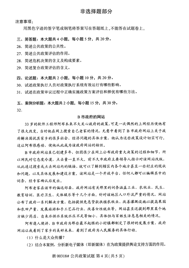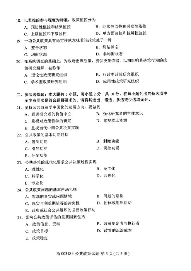 试题科目:公共政策试题