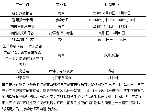 二、考生须在2018年6月22日之后登陆中国传媒大学高等教育自学考试毕业论文写作系统http://elearn.cuc.edu.cn/Thesis进行写作,用户名为准考证号,密码为电话号码(注册信息中考生个人填写的电话号码),类别为自考。考生登陆系统后进入所属专业论文计划,开始论文写作流程。
