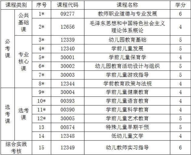 高等教育自学考试学前教育专业(专科、 独立本科段)考试计划