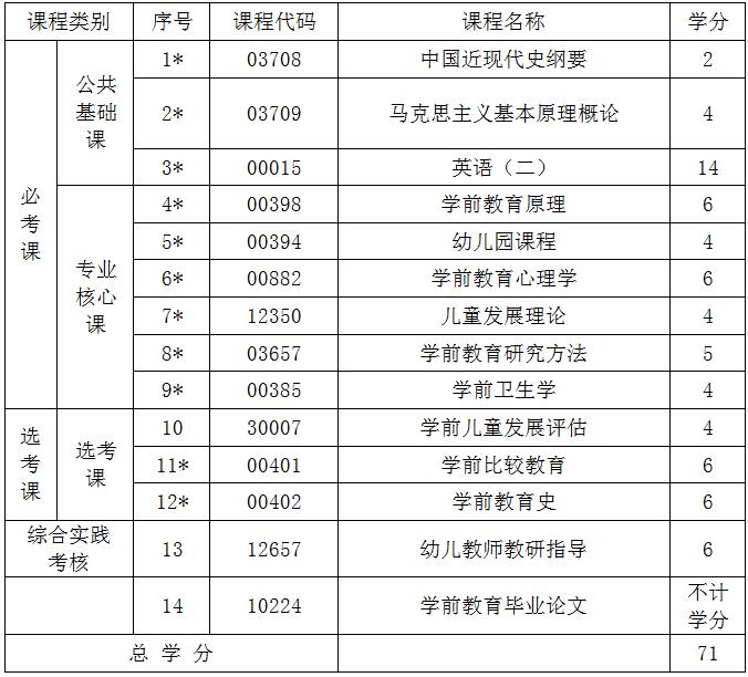 本专业分为专科和独立本科段。本专业(专科),凡取得本专业专科考试计划规定的15门课程合格成绩,总学分70学分,思想品德鉴定符合要求者,发给高等教育自学考试学前教育专业专科毕业证书。