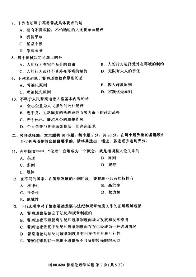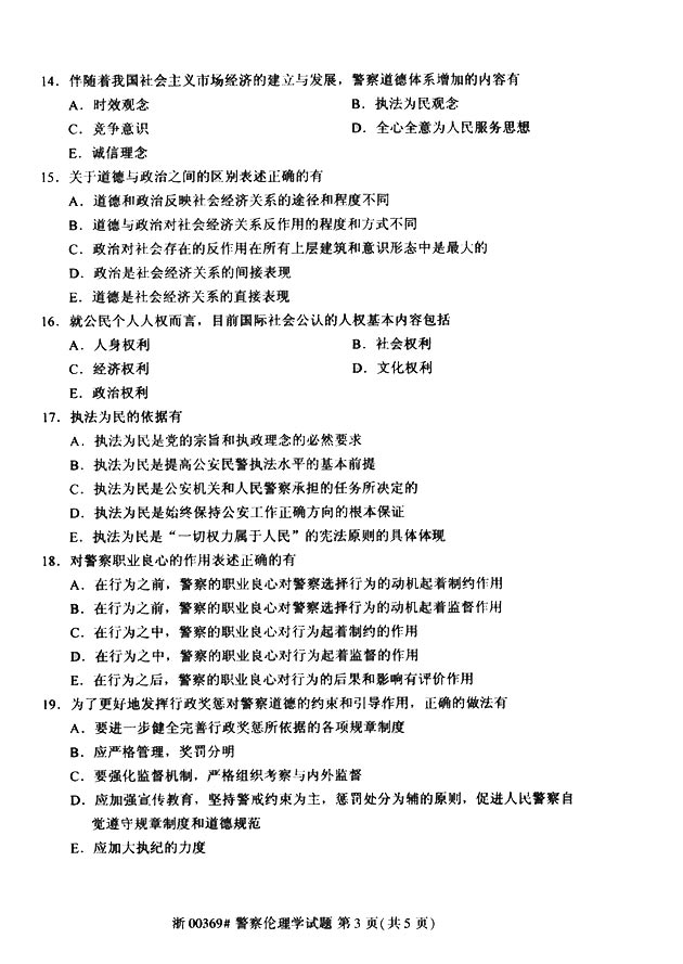 试题科目:《警察伦理学》真题