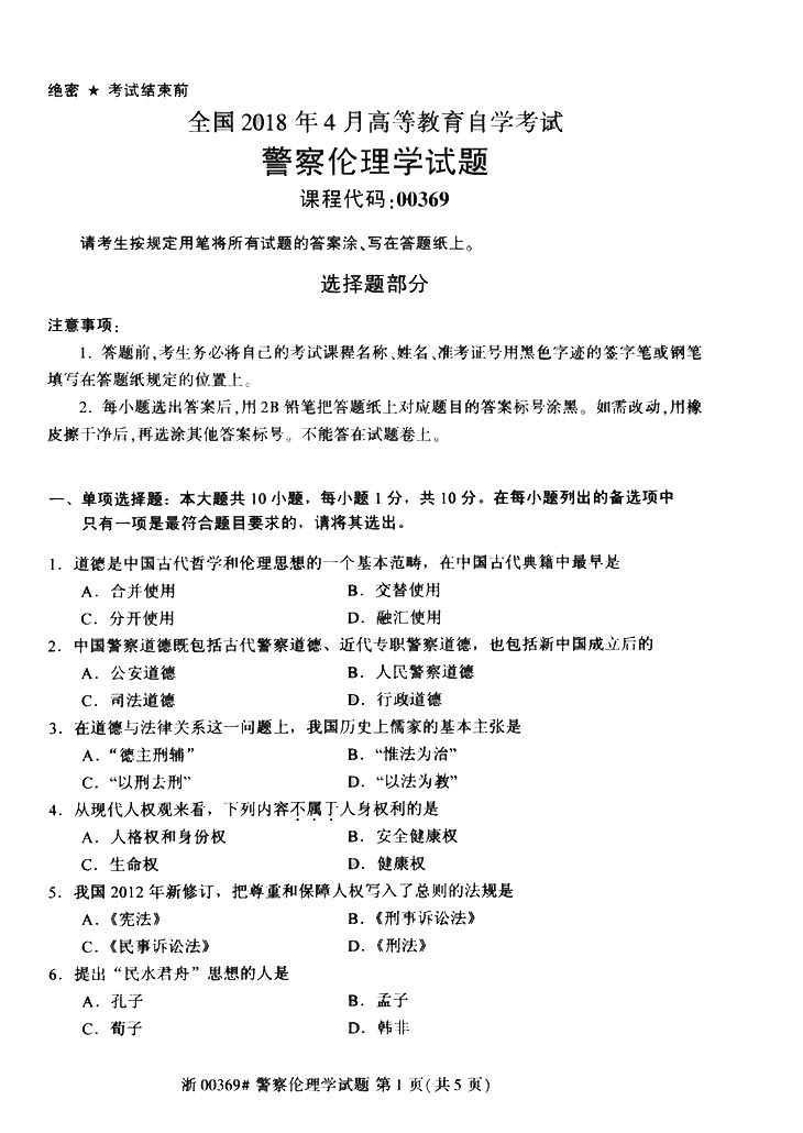 2018年4月全国高等教育自考《警察伦理学》真题,由贵州自考网整理。更多自考试题练习,请自考学生关注贵州自考网。