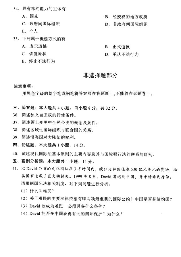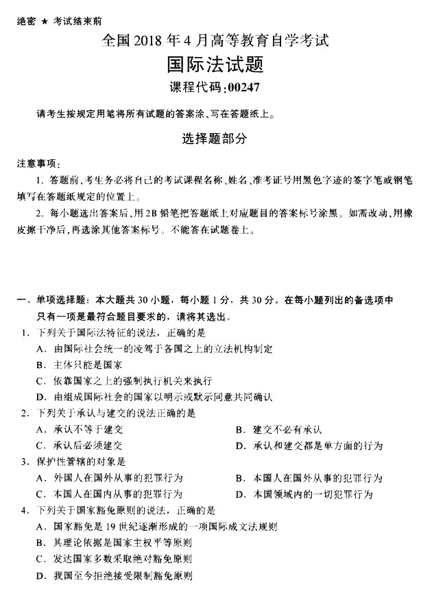2018年4月全国高等教育自考《国际法》真题,由贵州自考网整理。更多自考试题练习,请自考学生关注贵州自考网。