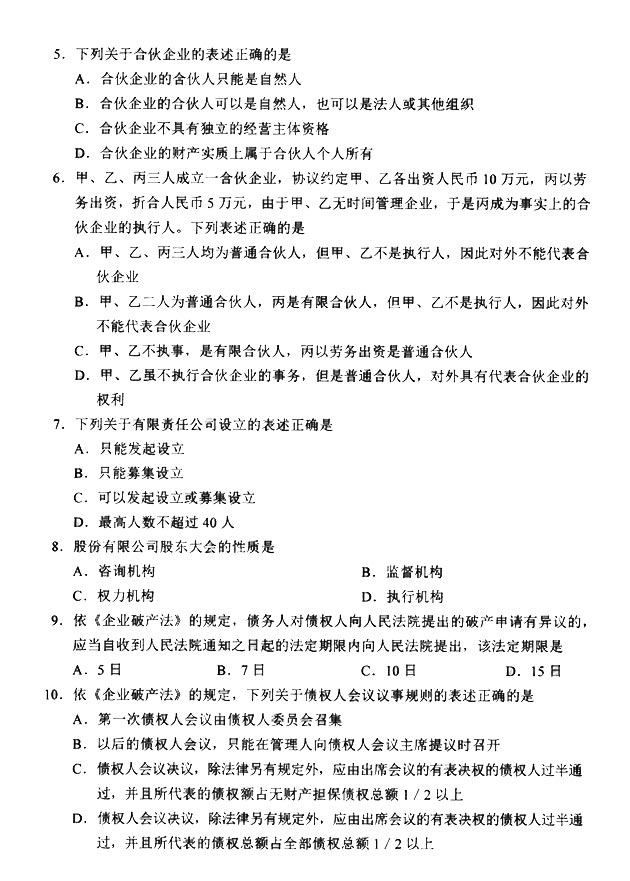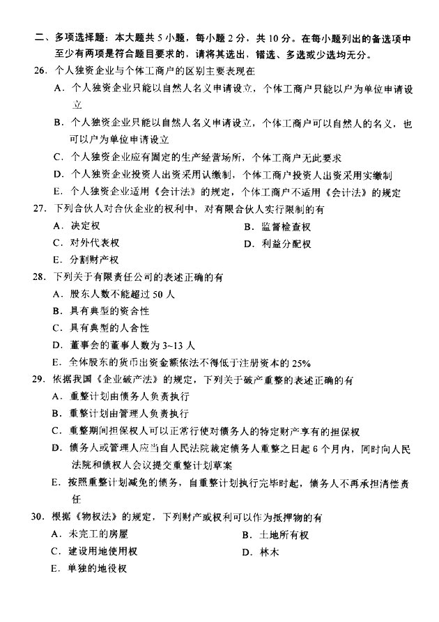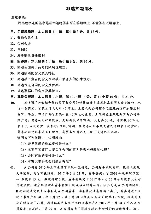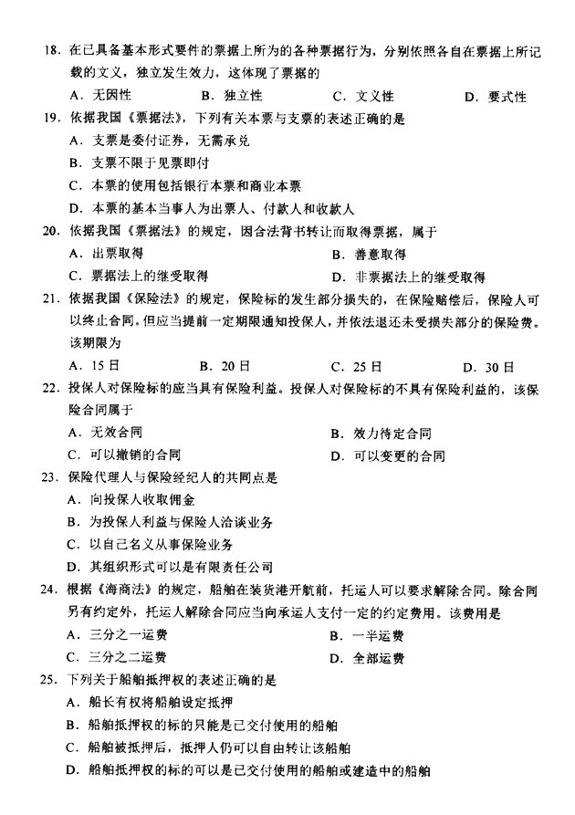 试题科目:《商法(二)》真题