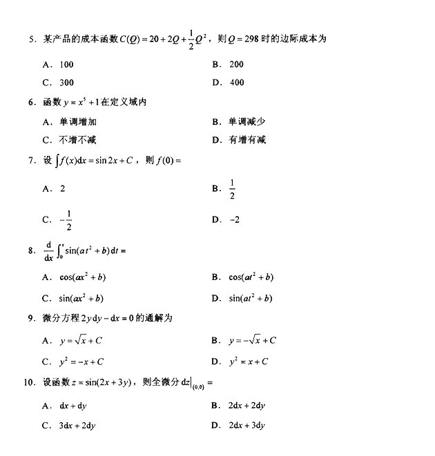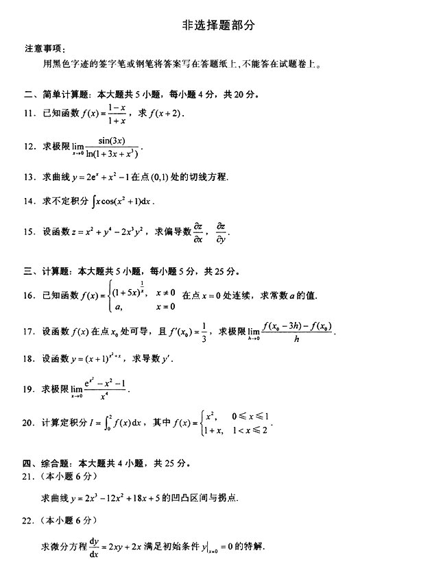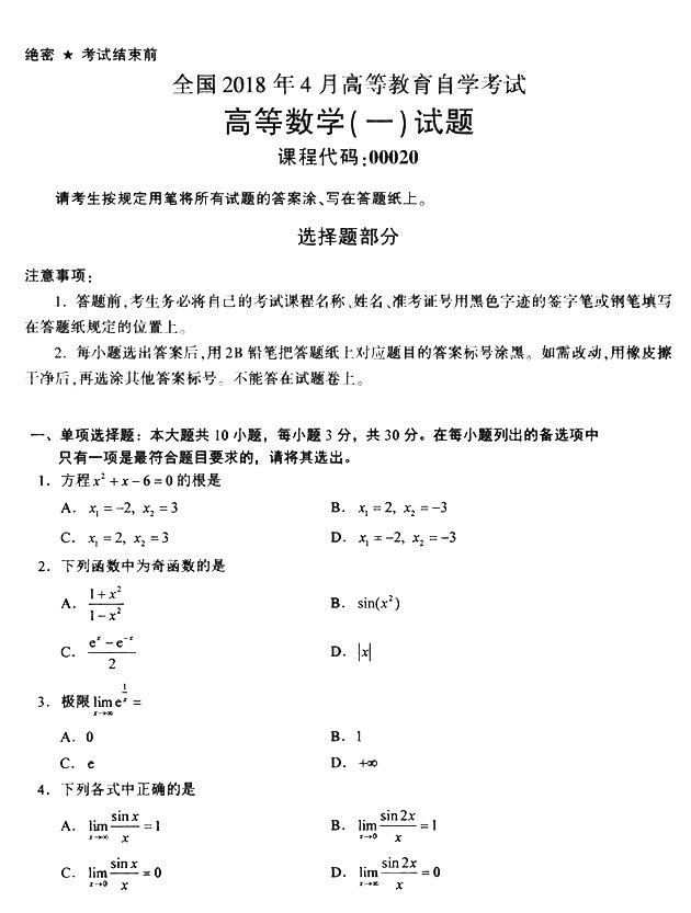 2018年4月全国高等教育自考《高等数学(一)》试题真题试卷已结束。