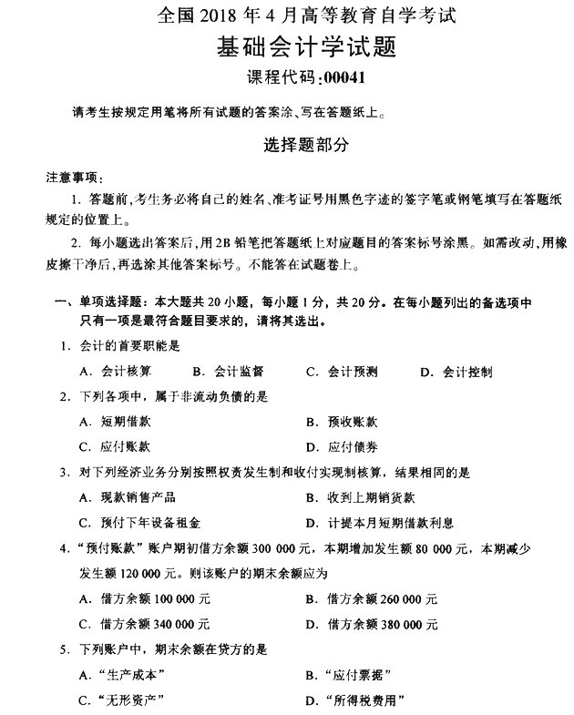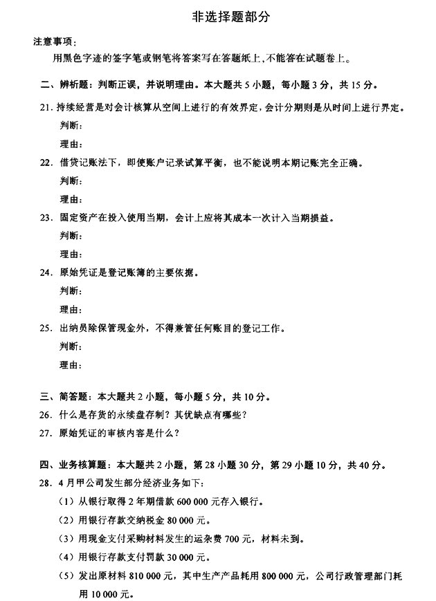 2018年4月全国高等教育自考《基础会计学》试题部分真题试卷已结束。