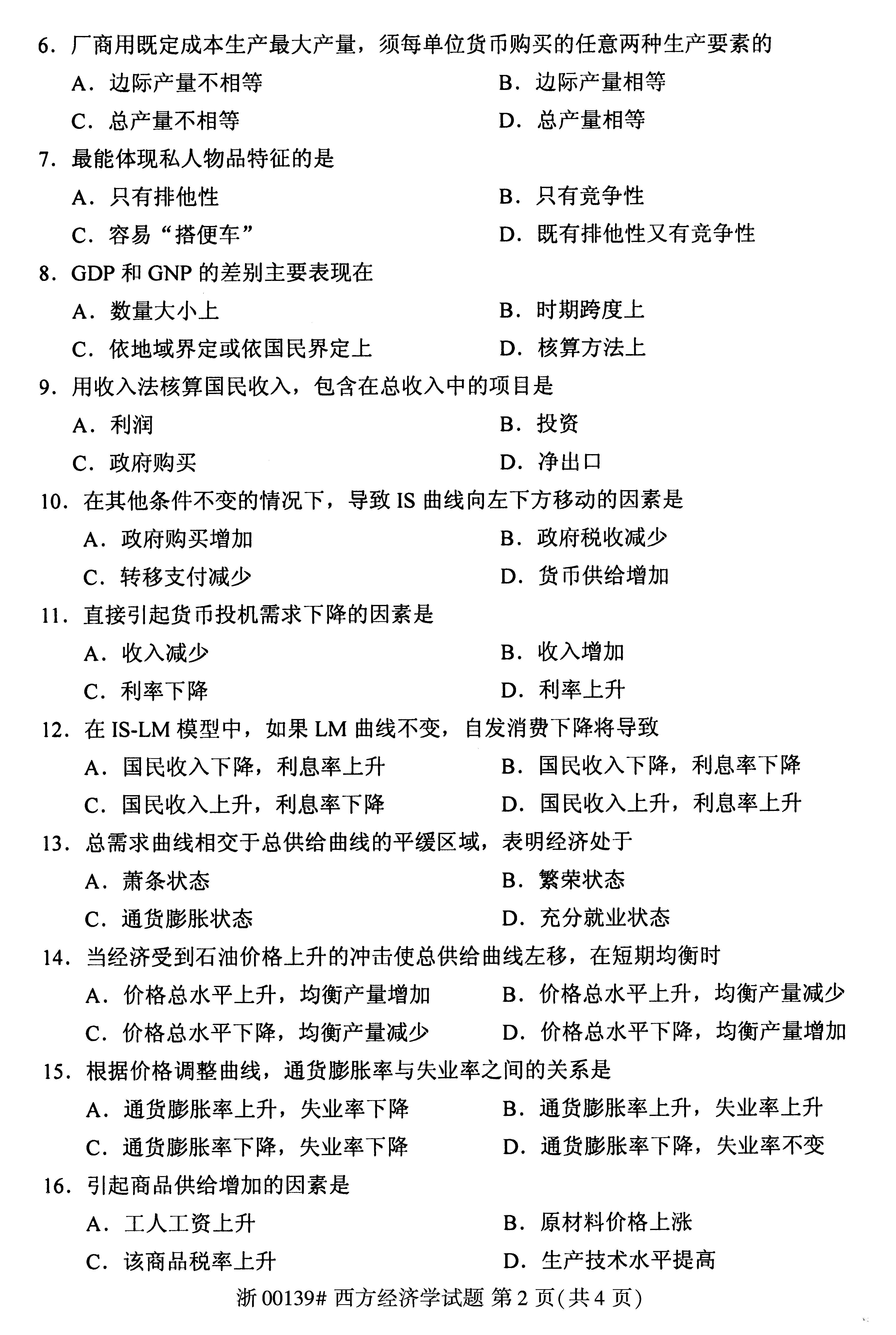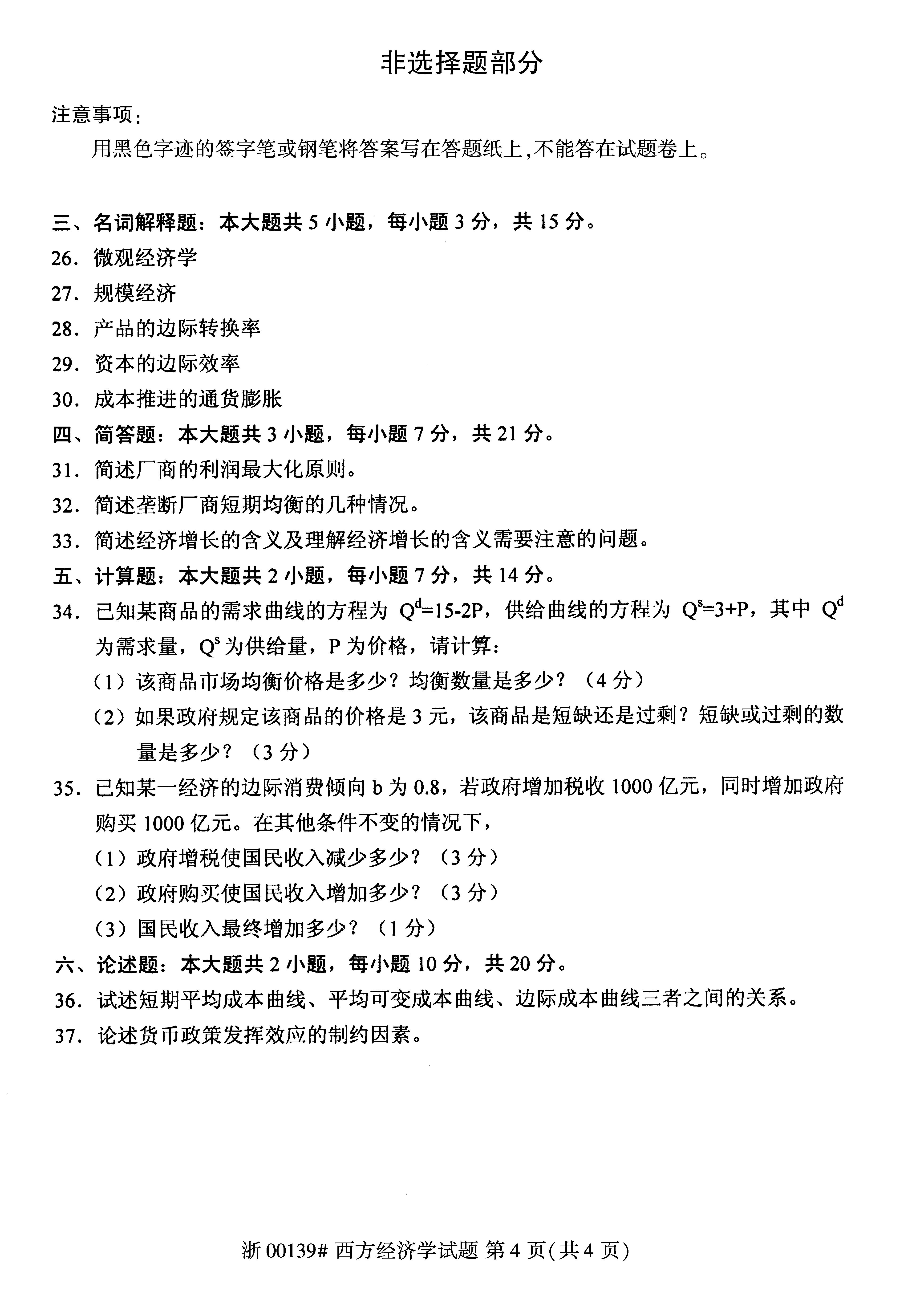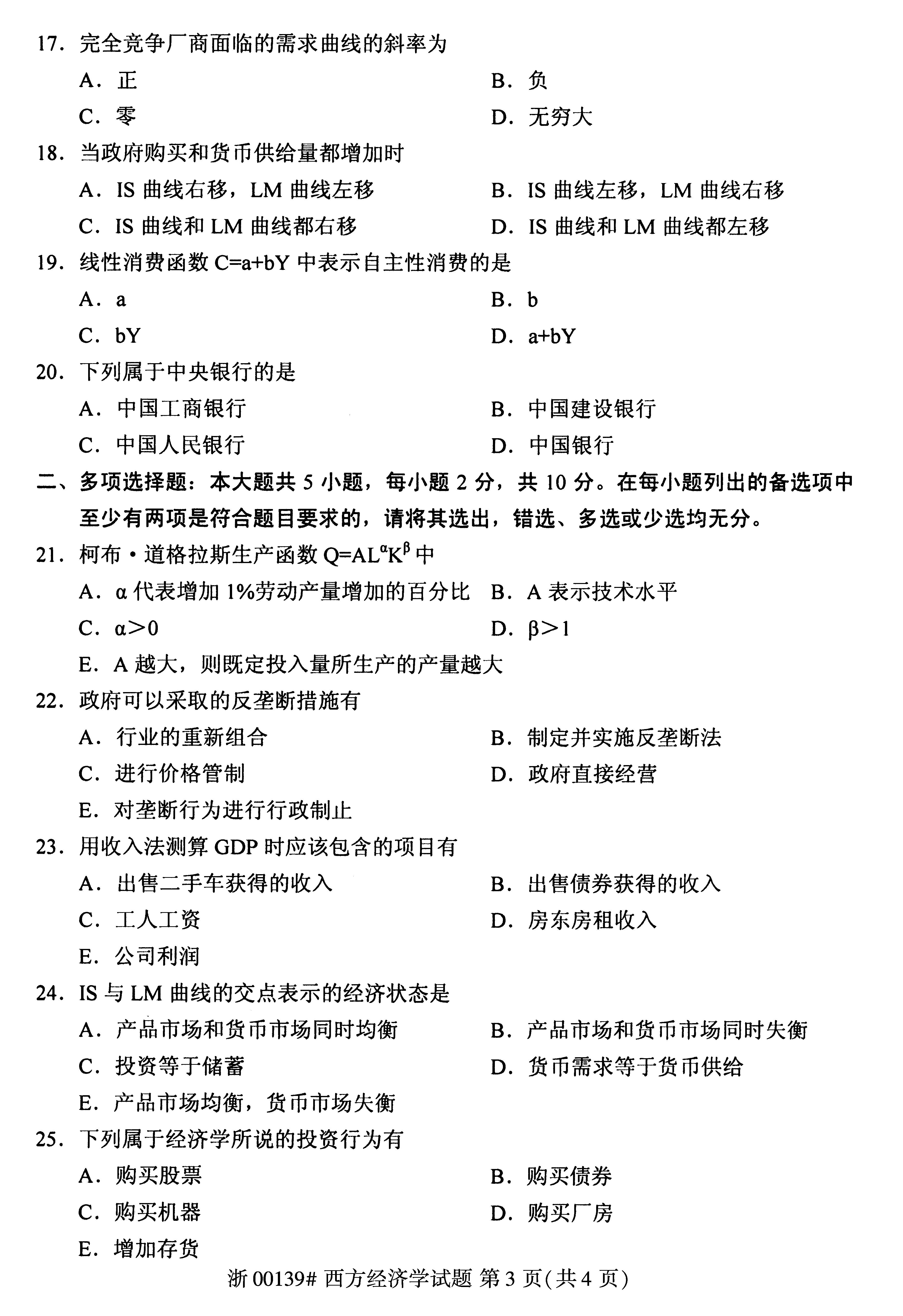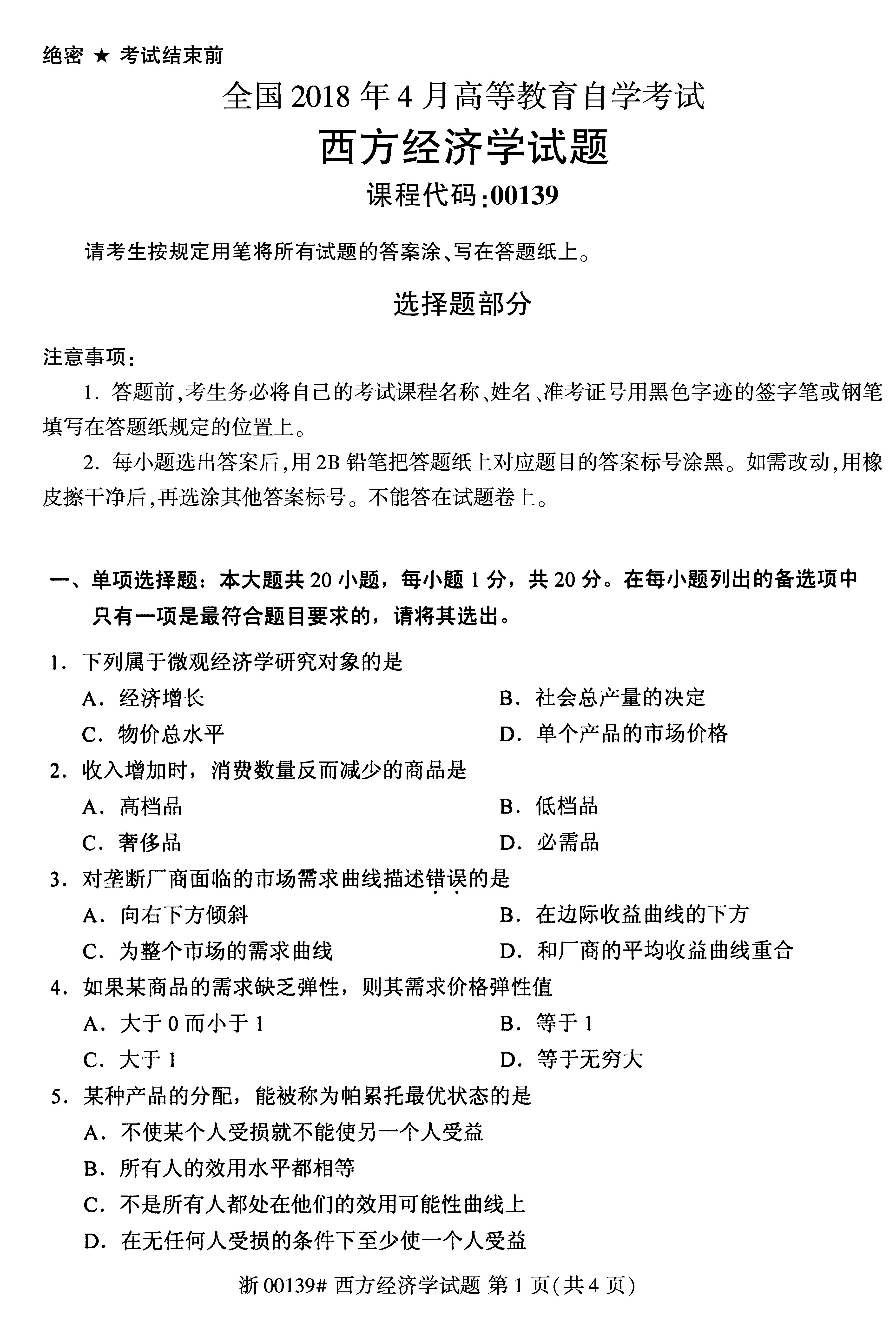试题科目:2018年4月全国自考西方经济学试题