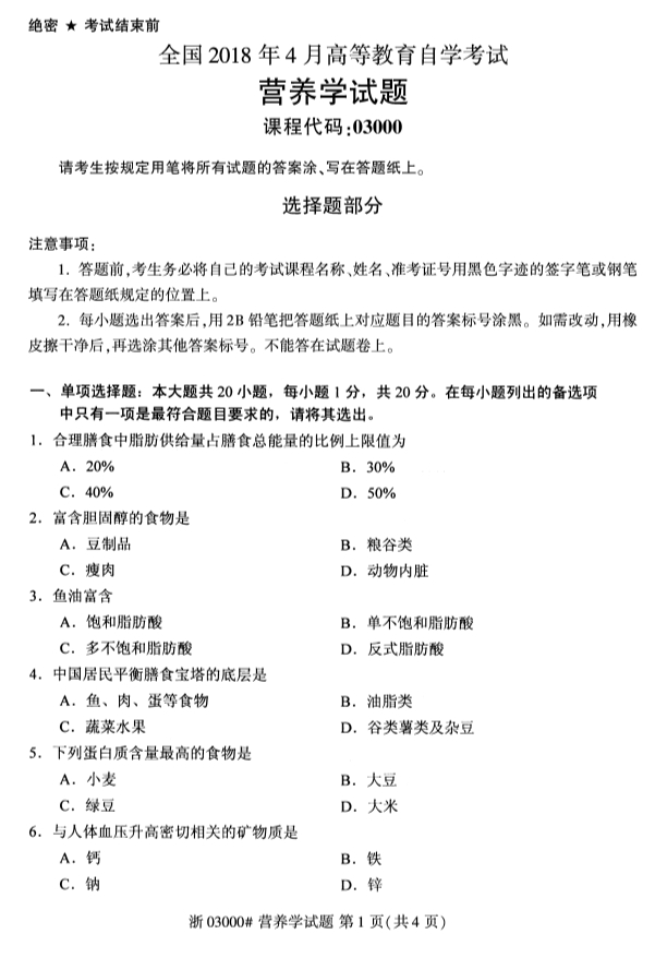 全国2018年4月高等教育自考营养学试题,由贵州自考网整理。更多自考试题练习,请自考学生关注贵州自考网。