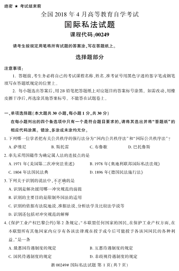 2018年4月全国高等教育自考国际私法试题,由贵州自考网整理。更多自考试题练习,请自考学生关注贵州自考网。