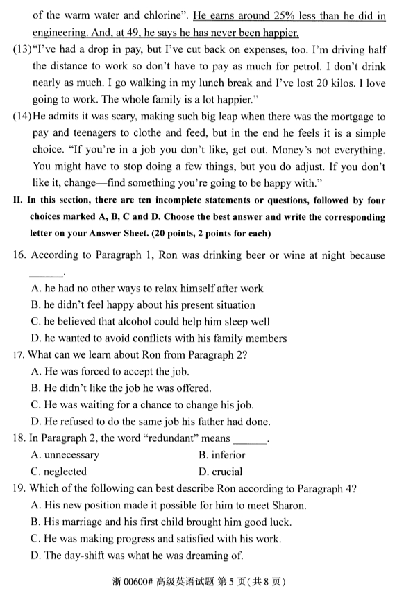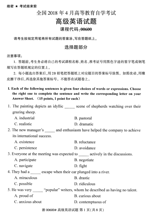 全国2018年4月高等教育自考高级英语试题PDF