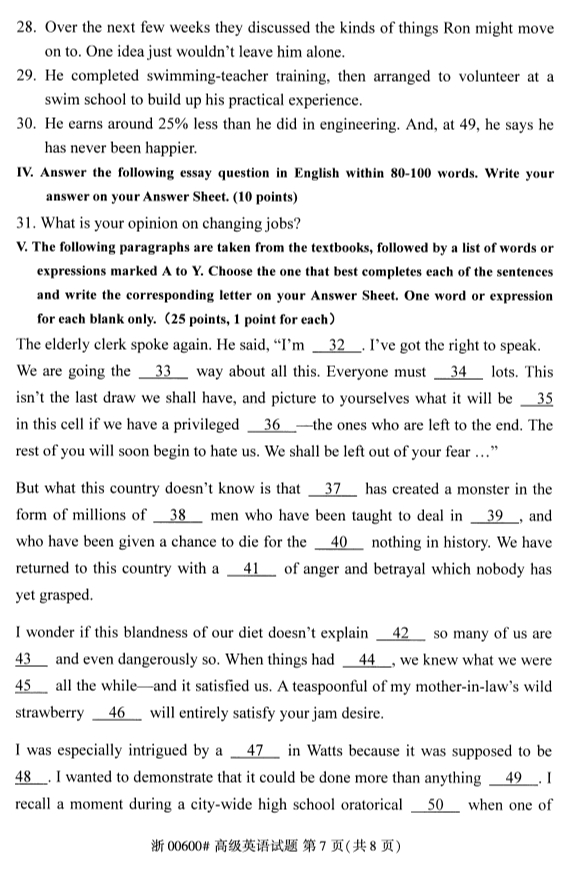 试题科目:高级英语试题