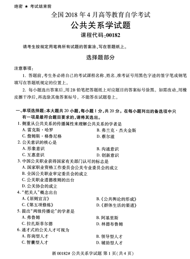 全国2018年4月高等教育自考公共关系学试题,由贵州自考网整理。更多自考试题练习,请自考学生关注贵州自考网。